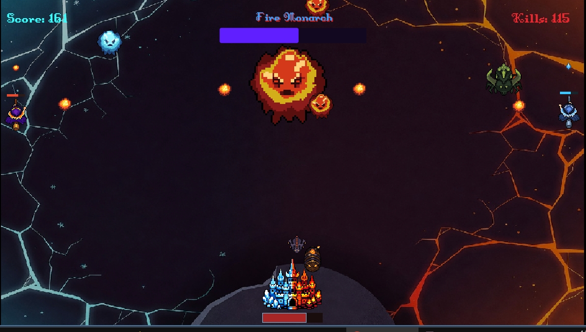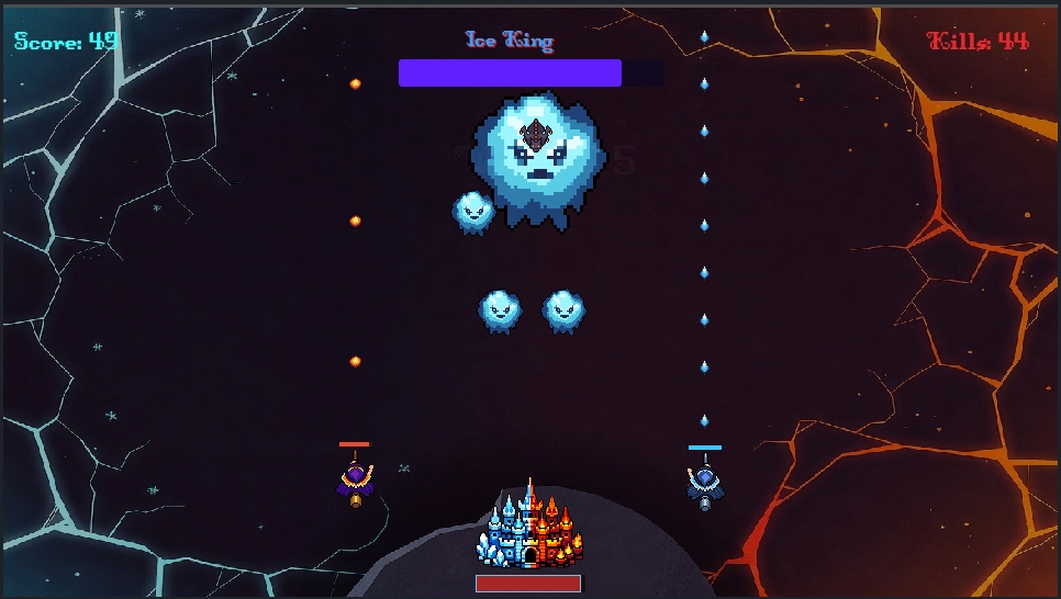 Guide both witches with your cursor, survive escalating waves of monsters, collect magical grimoires, and protect your enchanted base from destruction.